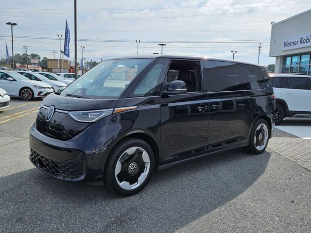 Deep Black Pearl 2025 Volkswagen ID. Buzz Pro S RWD Single-Speed Automatic Electric Motor 3rd row seats: split-bench, 9 Speakers, ABS brakes, Air Conditioning, Alloy wheels, Auto High-beam Headlights, Auto-dimming Rear-View mirror, Automatic temperature control, Brake assist, Bumpers: body-color, Delay-off headlights, Driver door bin, Driver vanity mirror, Driver's Seat Mounted Armrest, Dual front impact airbags, Dual front side impact airbags, Electronic Stability Control, Emergency communication system: VW Car-Net Safe & Secure 5-year, Exterior Parking Camera Rear, Four wheel independent suspension, Front anti-roll bar, Front Bucket Seats, Front dual zone A/C, Front fog lights, Front reading lights, Fully automatic headlights, Heated & Actively Ventilated Front Seats, Heated door mirrors, Heated front seats, Heated rear seats, Heated steering wheel, Illuminated entry, Leather steering wheel, Low tire pressure warning, Memory seat, Navigation System, Occupant sensing airbag, Outside temperature display, Overhead airbag, Panic alarm, Passenger door bin, Passenger seat mounted armrest, Passenger vanity mirror, Perforated V-Tex Leatherette Seating Surfaces, Power door mirrors, Power driver seat, Power Liftgate, Power passenger seat, Power steering, Power windows, Radio data system, Radio: Discover Pro Max w/Touchscreen Navigation, Rain sensing wipers, Rear air conditioning, Rear anti-roll bar, Rear reading lights, Rear window defroster, Rear window wiper, Remote keyless entry, Speed control, Speed-sensing steering, Split folding rear seat, Spoiler, Steering wheel mounted audio controls, TBD Axle Ratio, Telescoping steering wheel, Tilt steering wheel, Traction control, Trip computer, Turn signal indicator mirrors, Variably intermittent wipers, Ventilated front seats, Wheels: 20" Two-Tone Disc Alloy.