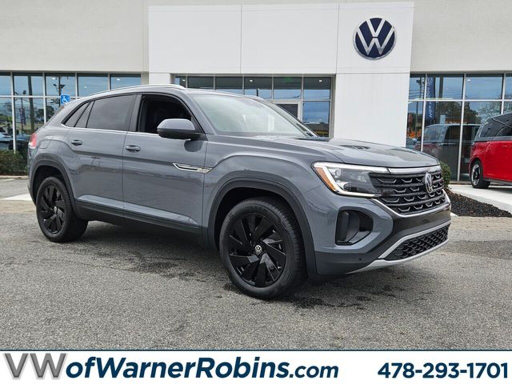 Gray 2026 Volkswagen Atlas Cross Sport 2.0T SE w/Technology AWD 8-Speed Automatic with Tiptronic 2.0L TSI 4-Wheel Disc Brakes, 4-Wheel Independent Suspension, 6 Speakers, ABS brakes, Air Conditioning, Alloy wheels, AM/FM radio: SiriusXM with 360L, Auto High-beam Headlights, Auto-dimming Rear-View mirror, Automatic temperature control, Brake assist, Bumpers: body-color, Compass, Delay-off headlights, Driver door bin, Driver vanity mirror, Dual front impact airbags, Dual front side impact airbags, Electronic Stability Control, Exterior Parking Camera Rear, Four wheel independent suspension, Front anti-roll bar, Front Bucket Seats, Front Center Armrest, Front dual zone A/C, Front fog lights, Front reading lights, Fully automatic headlights, Heated door mirrors, Heated front seats, Heated steering wheel, Illuminated entry, Low tire pressure warning, Occupant sensing airbag, Outside temperature display, Overhead airbag, Overhead console, Panic alarm, Passenger door bin, Passenger vanity mirror, Perforated V-Tex Leatherette Seating Surfaces, Power door mirrors, Power driver seat, Power Liftgate, Power steering, Power windows, Radio data system, Rain sensing wipers, Rear anti-roll bar, Rear reading lights, Rear seat center armrest, Rear window defroster, Rear window wiper, Remote keyless entry, Security system, Speed control, Speed-sensing steering, Split folding rear seat, Spoiler, Steering wheel mounted audio controls, Tachometer, Telescoping steering wheel, Tilt steering wheel, Traction control, Trip computer, Turn signal indicator mirrors, Variably intermittent wipers, Ventilated front seats, Wheels: 20" 5-Spoke 2-Tone Machined Alloy.