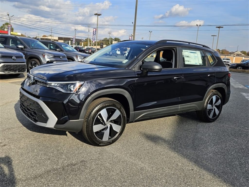 Pearl 2026 Volkswagen Taos 1.5T S AWD 8-Speed Automatic with Tiptronic 1.5L I4 Turbocharged DOHC 16V LEV3-SULEV30 174hp 4-Wheel Disc Brakes, 6 Speakers, ABS brakes, Active Blind Spot Monitor, Air Conditioning, Alloy wheels, AM/FM radio, Auto High-beam Headlights, Brake assist, Bumpers: body-color, Cloth Seating Surfaces, Compass, Delay-off headlights, Driver door bin, Driver vanity mirror, Dual front impact airbags, Dual front side impact airbags, Electronic Stability Control, Emergency communication system: VW Car-Net Safe & Secure 5-year, Exterior Parking Camera Rear, Four wheel independent suspension, Front anti-roll bar, Front Bucket Seats, Front Center Armrest, Front reading lights, Front Strut Rear Multi-Link Suspension, Fully automatic headlights, Heated door mirrors, Heated Front Bucket Seats, Heated front seats, Heated steering wheel, Illuminated entry, Leather Shift Knob, Low tire pressure warning, Occupant sensing airbag, Outside temperature display, Overhead airbag, Overhead console, Panic alarm, Passenger door bin, Passenger vanity mirror, Power door mirrors, Power steering, Power windows, Radio data system, Radio: MIB3 Composition Color AM/FM, Rain sensing wipers, Rear anti-roll bar, Rear seat center armrest, Rear window defroster, Rear window wiper, Remote keyless entry, Speed control, Speed-sensing steering, Split folding rear seat, Spoiler, Steering wheel mounted audio controls, Tachometer, Telescoping steering wheel, Tilt steering wheel, Traction control, Trip computer, Variably intermittent wipers, Wheels: 18" 2-Tone Machined Alloy.