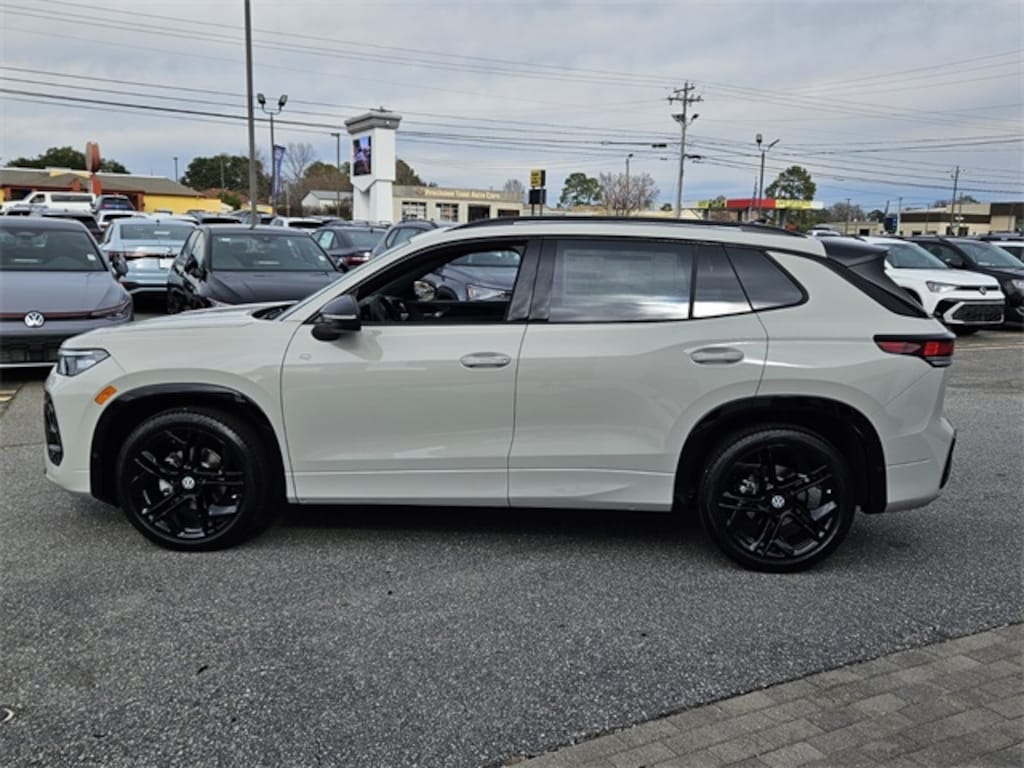 Sandstone 2026 Volkswagen Tiguan 2.0T SE R-Line Black FWD 8-Speed Automatic 2.0L TSI DOHC 4-Wheel Disc Brakes, 4-Wheel Independent Suspension, 7 Speakers, ABS brakes, Air Conditioning, Alloy wheels, AM/FM radio: SiriusXM with 360L, Auto High-beam Headlights, Auto-dimming Rear-View mirror, Automatic temperature control, Brake assist, Bumpers: body-color, Compass, Delay-off headlights, Driver door bin, Driver vanity mirror, Dual front impact airbags, Dual front side impact airbags, Electronic Stability Control, Emergency communication system, Exterior Parking Camera Rear, Four wheel independent suspension, Front anti-roll bar, Front Bucket Seats, Front Center Armrest, Front dual zone A/C, Front reading lights, Fully automatic headlights, Heads-Up Display, Heated door mirrors, Heated Front Seats, Heated front seats, Illuminated entry, Knee airbag, Leather Shift Knob, Leather steering wheel, Low tire pressure warning, Occupant sensing airbag, Outside temperature display, Overhead airbag, Overhead console, Panic alarm, Passenger door bin, Passenger vanity mirror, Perforated V-Tex Leatherette Seating Surfaces, Power door mirrors, Power driver seat, Power Liftgate, Power moonroof: Panoramic, Power steering, Power windows, Radio data system, Radio: MIB4 Composition Media Touchscreen with AM/FM, Rain sensing wipers, Rear anti-roll bar, Rear reading lights, Rear seat center armrest, Rear side impact airbag, Rear window defroster, Rear window wiper, Remote keyless entry, Security system, Speed control, Speed-sensing steering, Split folding rear seat, Spoiler, Sport steering wheel, Steering wheel mounted audio controls, Tachometer, Telescoping steering wheel, Tilt steering wheel, Traction control, Trip computer, Turn signal indicator mirrors, Variably intermittent wipers, Wheels: 20" Black Painted Alloy.