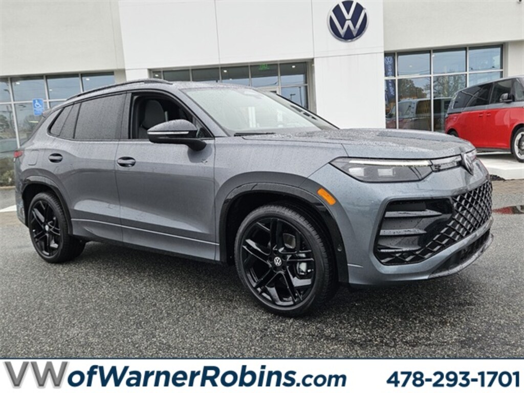 Platinum Gray 2026 Volkswagen Tiguan 2.0T SE R-Line Black FWD 8-Speed Automatic 2.0L TSI DOHC 4-Wheel Disc Brakes, 4-Wheel Independent Suspension, 7 Speakers, ABS brakes, Air Conditioning, Alloy wheels, AM/FM radio: SiriusXM with 360L, Auto High-beam Headlights, Auto-dimming Rear-View mirror, Automatic temperature control, Brake assist, Bumpers: body-color, Compass, Delay-off headlights, Driver door bin, Driver vanity mirror, Dual front impact airbags, Dual front side impact airbags, Electronic Stability Control, Emergency communication system, Exterior Parking Camera Rear, Four wheel independent suspension, Front anti-roll bar, Front Bucket Seats, Front Center Armrest, Front dual zone A/C, Front reading lights, Fully automatic headlights, Heads-Up Display, Heated door mirrors, Heated Front Seats, Heated front seats, Illuminated entry, Knee airbag, Leather Shift Knob, Leather steering wheel, Low tire pressure warning, Occupant sensing airbag, Outside temperature display, Overhead airbag, Overhead console, Panic alarm, Passenger door bin, Passenger vanity mirror, Perforated V-Tex Leatherette Seating Surfaces, Power door mirrors, Power driver seat, Power Liftgate, Power moonroof: Panoramic, Power steering, Power windows, Radio data system, Radio: MIB4 Composition Media Touchscreen with AM/FM, Rain sensing wipers, Rear anti-roll bar, Rear reading lights, Rear seat center armrest, Rear side impact airbag, Rear window defroster, Rear window wiper, Remote keyless entry, Security system, Speed control, Speed-sensing steering, Split folding rear seat, Spoiler, Sport steering wheel, Steering wheel mounted audio controls, Tachometer, Telescoping steering wheel, Tilt steering wheel, Traction control, Trip computer, Turn signal indicator mirrors, Variably intermittent wipers, Wheels: 20" Black Painted Alloy.