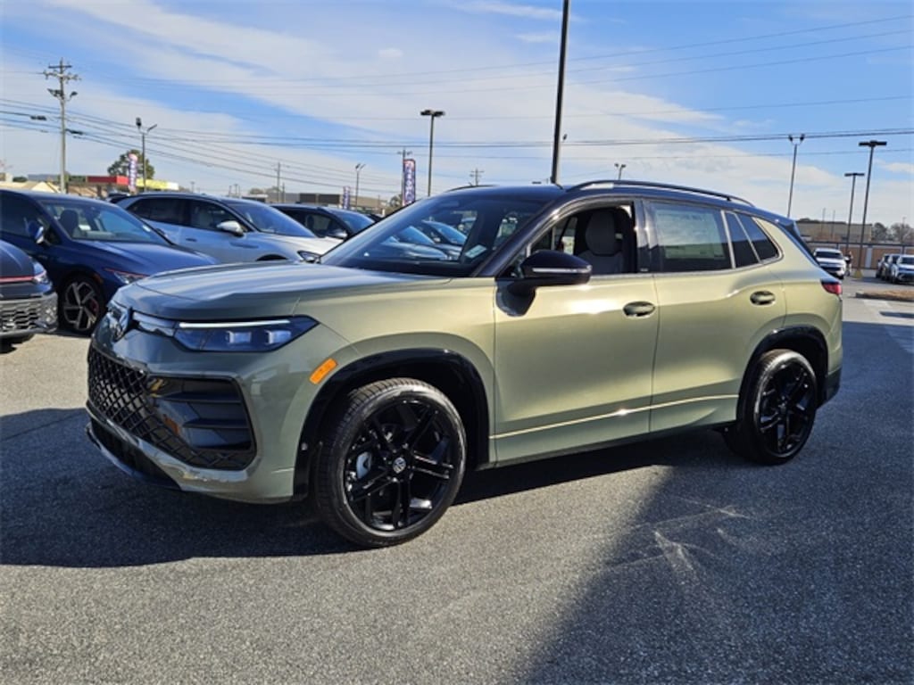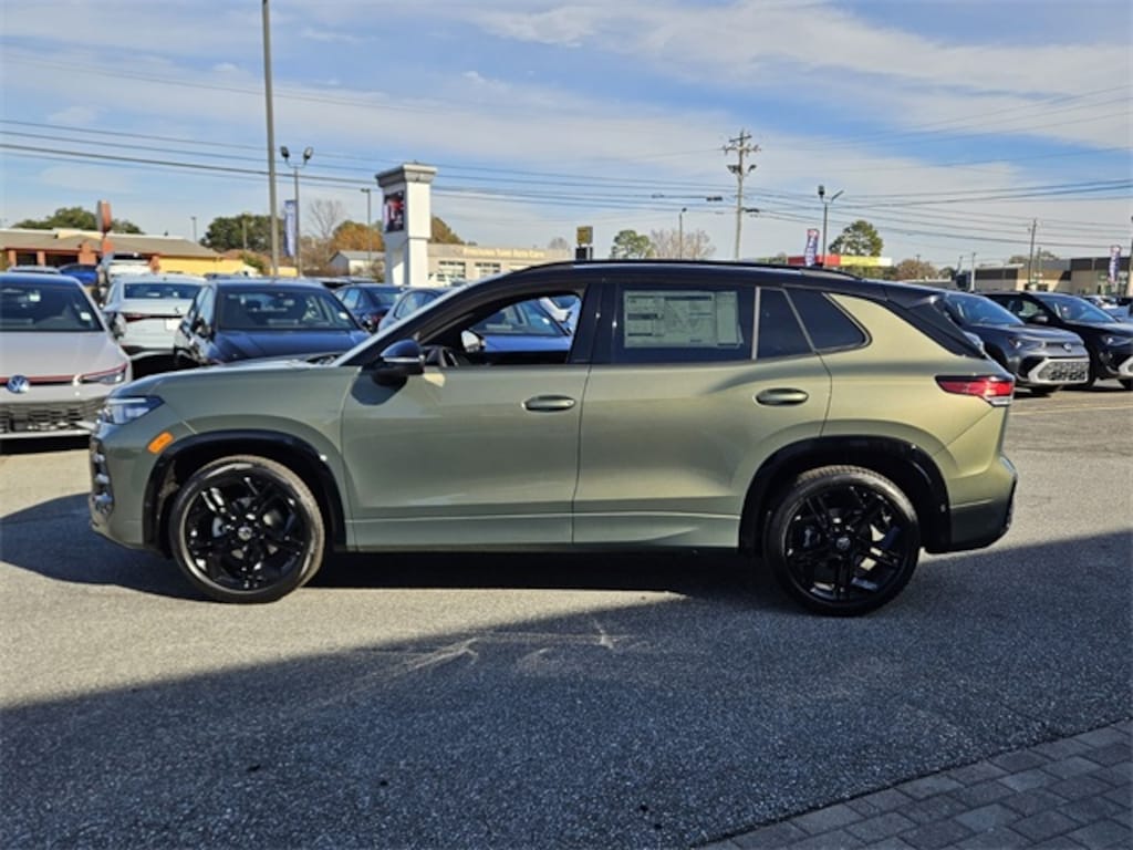 Green 2026 Volkswagen Tiguan 2.0T SE R-Line Black FWD 8-Speed Automatic 2.0L TSI DOHC 4-Wheel Disc Brakes, 4-Wheel Independent Suspension, 7 Speakers, ABS brakes, Air Conditioning, Alloy wheels, AM/FM radio: SiriusXM with 360L, Auto High-beam Headlights, Auto-dimming Rear-View mirror, Automatic temperature control, Brake assist, Bumpers: body-color, Compass, Delay-off headlights, Driver door bin, Driver vanity mirror, Dual front impact airbags, Dual front side impact airbags, Electronic Stability Control, Emergency communication system, Exterior Parking Camera Rear, Four wheel independent suspension, Front anti-roll bar, Front Bucket Seats, Front Center Armrest, Front dual zone A/C, Front reading lights, Fully automatic headlights, Heads-Up Display, Heated door mirrors, Heated Front Seats, Heated front seats, Illuminated entry, Knee airbag, Leather Shift Knob, Leather steering wheel, Low tire pressure warning, Occupant sensing airbag, Outside temperature display, Overhead airbag, Overhead console, Panic alarm, Passenger door bin, Passenger vanity mirror, Perforated V-Tex Leatherette Seating Surfaces, Power door mirrors, Power driver seat, Power Liftgate, Power moonroof: Panoramic, Power steering, Power windows, Radio data system, Radio: MIB4 Composition Media Touchscreen with AM/FM, Rain sensing wipers, Rear anti-roll bar, Rear reading lights, Rear seat center armrest, Rear side impact airbag, Rear window defroster, Rear window wiper, Remote keyless entry, Security system, Speed control, Speed-sensing steering, Split folding rear seat, Spoiler, Sport steering wheel, Steering wheel mounted audio controls, Tachometer, Telescoping steering wheel, Tilt steering wheel, Traction control, Trip computer, Turn signal indicator mirrors, Variably intermittent wipers, Wheels: 20" Black Painted Alloy.