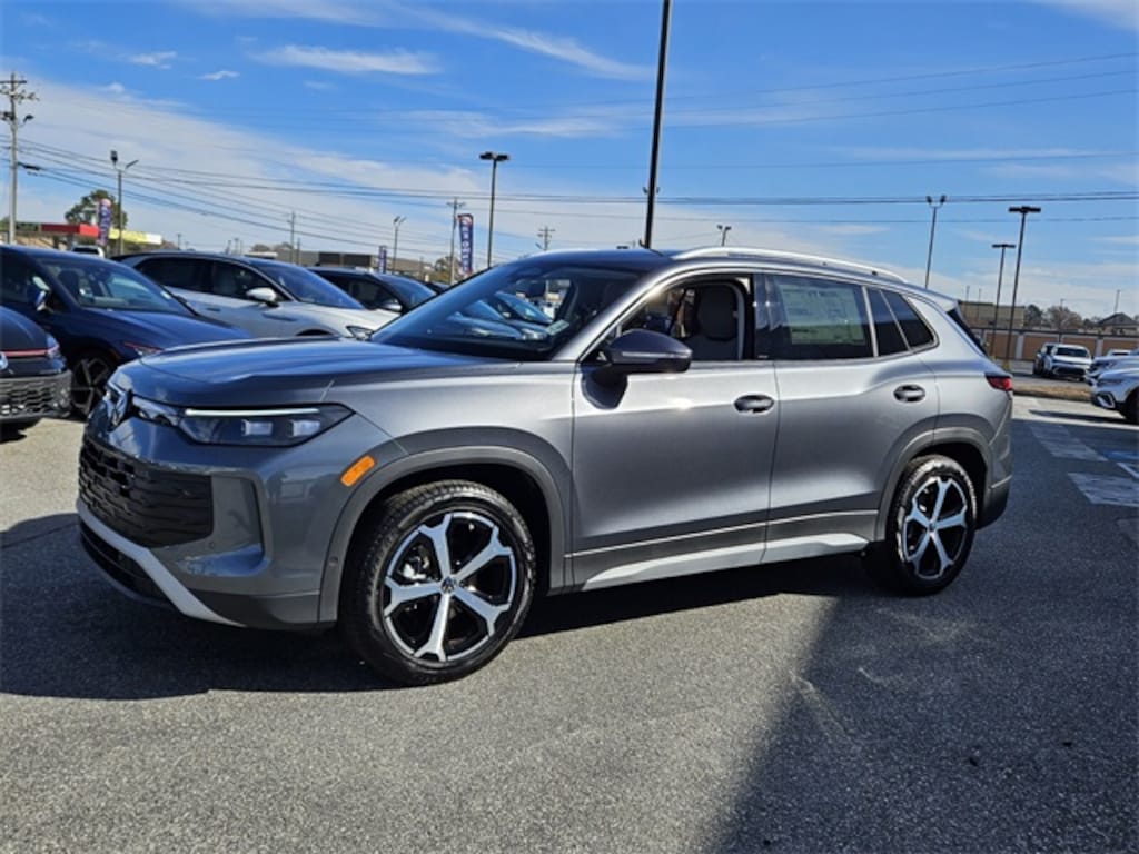 Platinum Gray 2026 Volkswagen Tiguan 2.0T SE FWD 8-Speed Automatic 2.0L TSI DOHC 4-Wheel Disc Brakes, 4-Wheel Independent Suspension, 7 Speakers, ABS brakes, Air Conditioning, Alloy wheels, AM/FM radio: SiriusXM with 360L, Auto High-beam Headlights, Auto-dimming Rear-View mirror, Automatic temperature control, Brake assist, Bumpers: body-color, Compass, Delay-off headlights, Driver door bin, Driver vanity mirror, Dual front impact airbags, Dual front side impact airbags, Electronic Stability Control, Emergency communication system, Exterior Parking Camera Rear, Four wheel independent suspension, Front anti-roll bar, Front Bucket Seats, Front Center Armrest, Front dual zone A/C, Front reading lights, Fully automatic headlights, Heated door mirrors, Heated Front Seats, Heated front seats, Illuminated entry, Knee airbag, Leather Shift Knob, Low tire pressure warning, Occupant sensing airbag, Outside temperature display, Overhead airbag, Overhead console, Panic alarm, Passenger door bin, Passenger vanity mirror, Perforated V-Tex Leatherette Seating Surfaces, Power door mirrors, Power driver seat, Power Liftgate, Power steering, Power windows, Radio data system, Radio: MIB4 Composition Media Touchscreen with AM/FM, Rain sensing wipers, Rear anti-roll bar, Rear reading lights, Rear seat center armrest, Rear side impact airbag, Rear window defroster, Rear window wiper, Remote keyless entry, Security system, Speed control, Speed-sensing steering, Split folding rear seat, Spoiler, Steering wheel mounted audio controls, Tachometer, Telescoping steering wheel, Tilt steering wheel, Traction control, Trip computer, Turn signal indicator mirrors, Variably intermittent wipers, Wheels: 19" 2-Tone Machined Alloy.