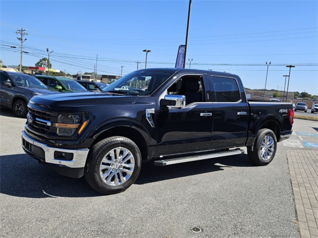 Agate Black Metallic 2024 Ford F-150 XLT 4WD 10-Speed Automatic 2.7L V6 EcoBoost This F-150 is equipped with. 4WD, 3.55 Axle Ratio, 4-Wheel Disc Brakes, 400W Cab & Bed Outlets, 6 Speakers, ABS brakes, Adaptive Cruise Control w/Stop & Go, Air Conditioning, Alloy wheels, AM/FM radio: SiriusXM with 360L, Auto High-beam Headlights, Auto-Dimming Rear-View Mirror, Auto-dimming Rear-View mirror, Automatic temperature control, Brake assist, Bumpers: chrome, Chrome wheels, Cloth 40/20/40 Front Seat, Cloth 40/Console/40 Front Seats, Compass, Delay-off headlights, Driver door bin, Driver vanity mirror, Dual front impact airbags, Dual front side impact airbags, Electronic Stability Control, Emergency communication system: SYNC 4 911 Assist, Equipment Group 302A Mid, Ford BlueCruise Equipped (90-Day Trial), Front anti-roll bar, Front Center Armrest w/Storage, Front dual zone A/C, Front fog lights, Front reading lights, Front wheel independent suspension, Fully automatic headlights, GVWR: 6,650 lbs Payload Package, Heated door mirrors, Heated Front Seats, Illuminated entry, Intelligent Access w/Push Button Start, LED Sideview Mirror Spotlights, Low tire pressure warning, Navigation system: Connected Navigation, Occupant sensing airbag, Outside temperature display, Overhead airbag, Overhead console, Panic alarm, Passenger door bin, Passenger vanity mirror, Power door mirrors, Power driver seat, Power Glass Heated Sideview Mirrors, Power steering, Power windows, Power-Sliding Rear Window, Radio data system, Radio: AM/FM SiriusXM w/360L, Rear reading lights, Rear step bumper, Rear window defroster, Remote keyless entry, Remote Start System w/Remote Tailgate Release, Security system, Speed control, Speed Sign Recognition, Split folding rear seat, Steering wheel mounted audio controls, SYNC 4 w/Enhanced Voice Recognition, Tachometer, Telescoping steering wheel, Tilt steering wheel, Traction control, Trip computer, Variably intermittent wipers, Voltmeter, Wheels: 18" Chrome-Like PVD, Wheels: 20" Chrome-Like PVD, 4WD.