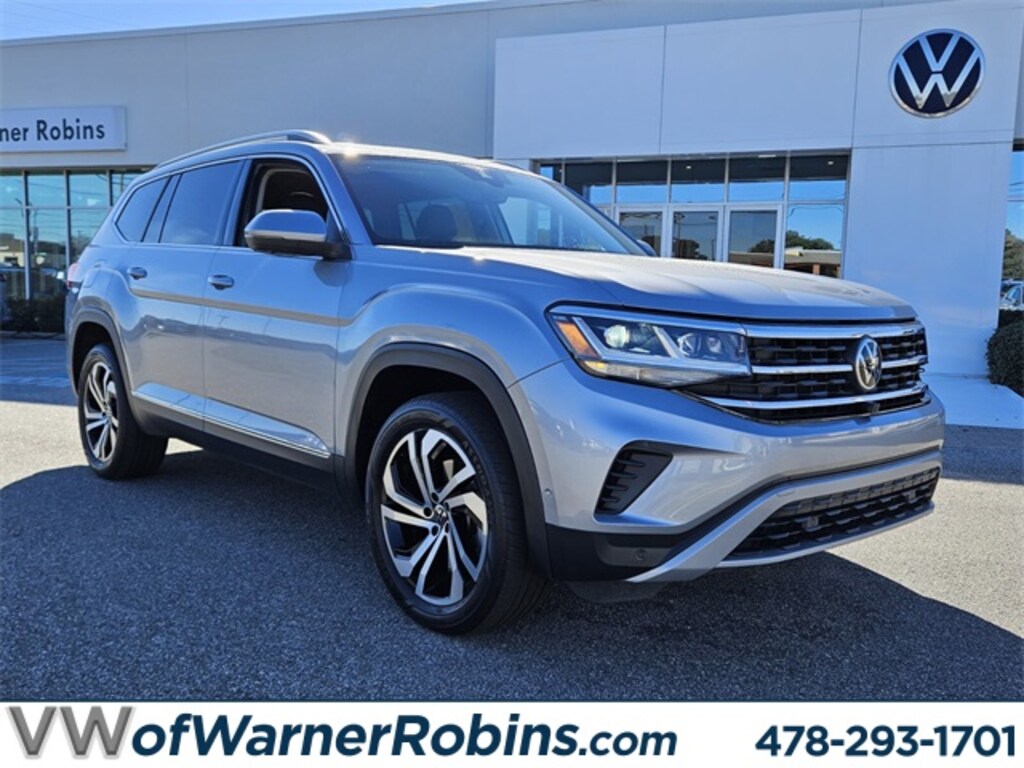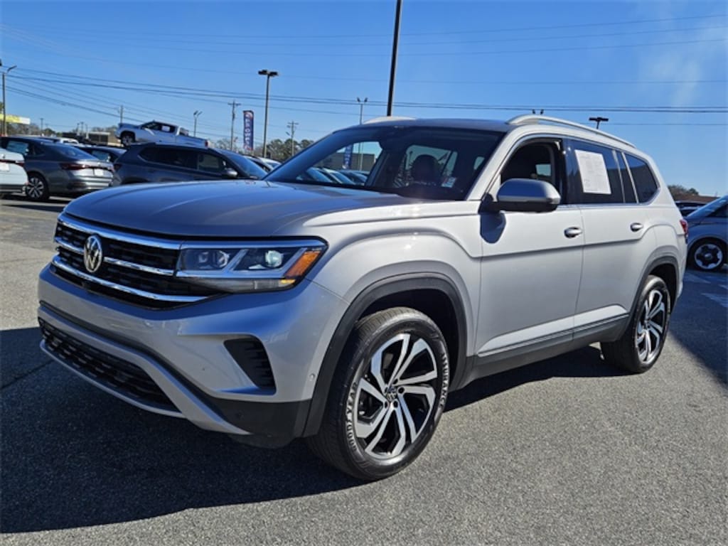 Pyrite Silver Metallic 2021 Volkswagen Atlas 2.0T SEL Premium AWD 8-Speed Automatic with Tiptronic 2.0L TSI This Atlas is equipped with. 12 Speakers, 3.60 Axle Ratio, 3rd row seats: split-bench, 4-Wheel Disc Brakes, ABS brakes, Air Conditioning, Alloy wheels, Auto High-beam Headlights, Auto-dimming Rear-View mirror, Automatic temperature control, Brake assist, Bumpers: body-color, Compass, Delay-off headlights, Driver door bin, Driver vanity mirror, Dual front impact airbags, Dual front side impact airbags, Electronic Stability Control, Emergency communication system: VW Car-Net services (capabilities require enrollment or subscription), Four wheel independent suspension, Front anti-roll bar, Front Bucket Seats, Front Center Armrest, Front dual zone A/C, Front fog lights, Front reading lights, Fully automatic headlights, Heated door mirrors, Heated front seats, Heated rear seats, Heated steering wheel, Htd/Actively Ventilated Comfort Front Sport Seats, Illuminated entry, Leather Shift Knob, Low tire pressure warning, Memory seat, Navigation System, Occupant sensing airbag, Outside temperature display, Overhead airbag, Overhead console, Panic alarm, Passenger door bin, Passenger vanity mirror, Perforated Vienna Leather Seating Surfaces, Power door mirrors, Power driver seat, Power Liftgate, Power moonroof, Power passenger seat, Power steering, Power windows, Radio data system, Rain sensing wipers, Rear air conditioning, Rear anti-roll bar, Rear audio controls, Rear reading lights, Rear seat center armrest, Rear window defroster, Rear window wiper, Remote keyless entry, Roof rack: rails only, Security system, Speed control, Speed-sensing steering, Split folding rear seat, Spoiler, Standard Suspension, Steering wheel mounted audio controls, Tachometer, Telescoping steering wheel, Tilt steering wheel, Traction control, Trip computer, Turn signal indicator mirrors, Variably intermittent wipers, Ventilated front seats, Wheels: 20" 5-Spoke 2-Tone Machined Alloy.