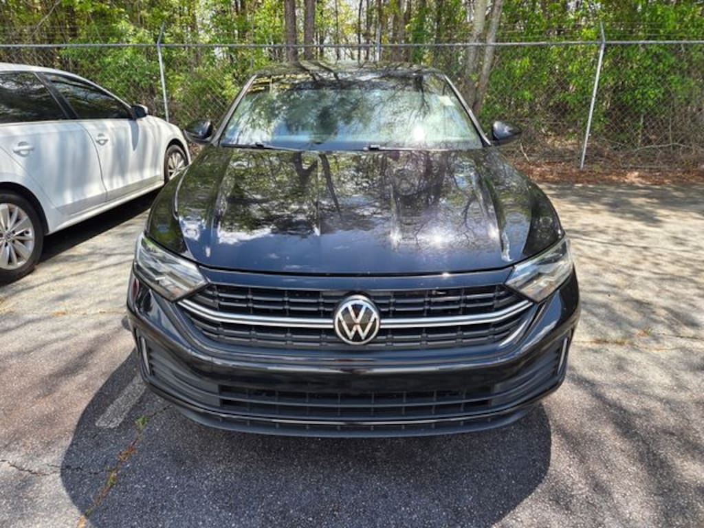 Black 2022 Volkswagen Jetta 1.5T Sport FWD 8-Speed Automatic with Tiptronic 1.5L I-4 DI DOHC Turbocharged This Jetta is equipped with. Cloth, 4 Speakers, 4-Wheel Disc Brakes, ABS brakes, Air Conditioning, Alloy wheels, AM/FM radio, Brake assist, Bumpers: body-color, Cloth Seat Trim, Delay-off headlights, Driver door bin, Driver vanity mirror, Dual front impact airbags, Dual front side impact airbags, Electronic Stability Control, Emergency communication system: Car-Net, Exterior Parking Camera Rear, Front anti-roll bar, Front Bucket Seats, Front Center Armrest, Front Comfort Seats, Front wheel independent suspension, Fully automatic headlights, Heated door mirrors, Illuminated entry, Low tire pressure warning, Occupant sensing airbag, Outside temperature display, Overhead airbag, Overhead console, Panic alarm, Passenger door bin, Passenger vanity mirror, Power door mirrors, Power steering, Power windows, Radio data system, Radio: MIB3 Composition Color w/6.5" Touchscreen, Rear anti-roll bar, Rear reading lights, Rear seat center armrest, Rear window defroster, Remote keyless entry, Speed control, Speed-sensing steering, Split folding rear seat, Steering wheel mounted audio controls, Tachometer, Telescoping steering wheel, Tilt steering wheel, Traction control, Trip computer, Variably intermittent wipers, Wheels: 17" 2-Tone Machined Alloy, Cloth.