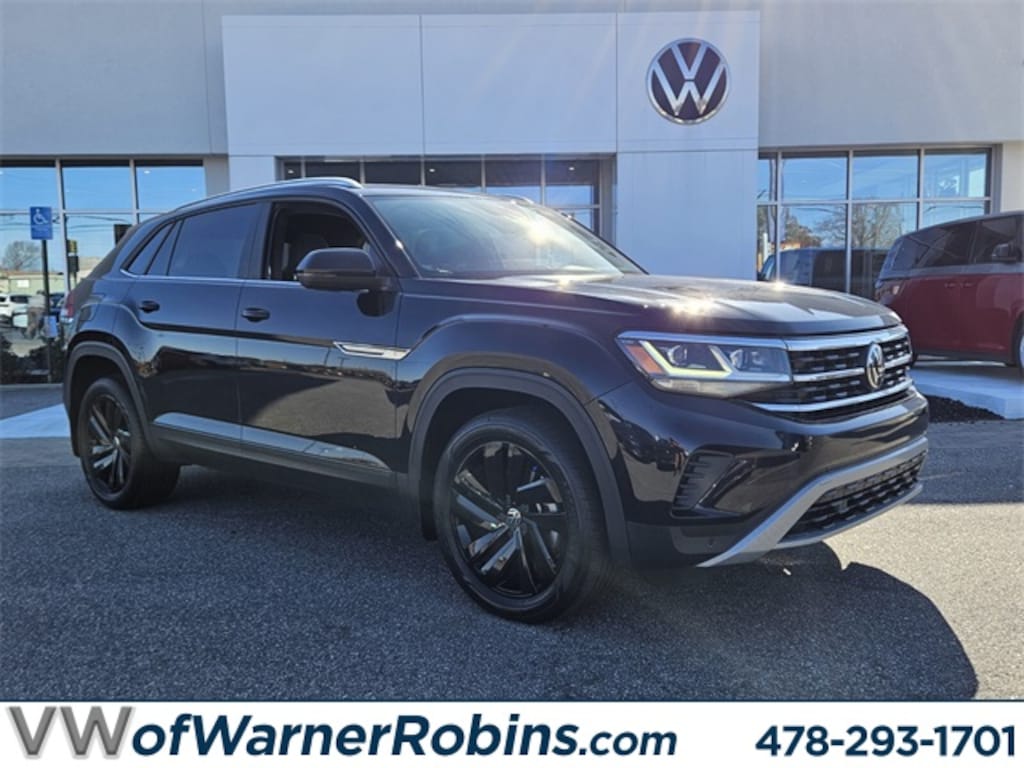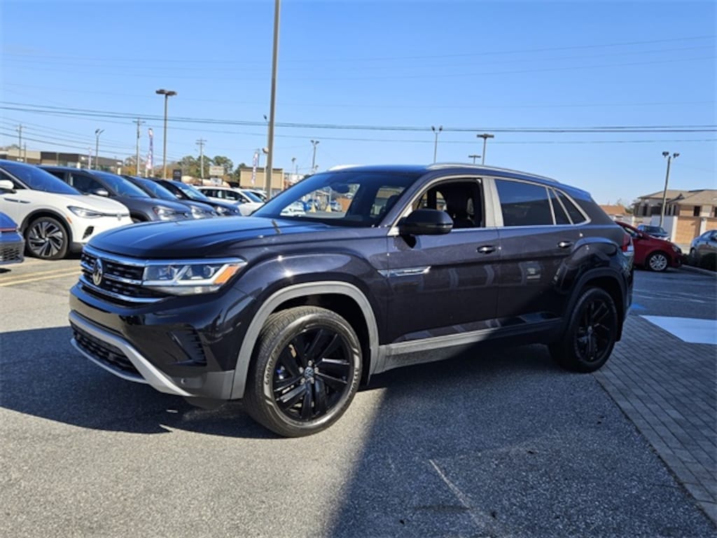 Deep Black 2023 Volkswagen Atlas Cross Sport 3.6L V6 SE w/Technology AWD 8-Speed Automatic with Tiptronic 3.6L VR6 This Atlas Cross Sport is equipped with. 3.60 Axle Ratio, 4-Wheel Disc Brakes, 6 Speakers, ABS brakes, Air Conditioning, Alloy wheels, AM/FM radio: SiriusXM with 360L, Auto-dimming Rear-View mirror, Automatic temperature control, Black Wheel Package, Brake assist, Bumpers: body-color, Compass, Delay-off headlights, Driver door bin, Driver vanity mirror, Dual front impact airbags, Dual front side impact airbags, Electronic Stability Control, Emergency communication system: VW Car-Net Safe & Secure 5-year, Exterior Parking Camera Rear, First Aid Kit, Four wheel independent suspension, Frameless Auto-Dimming Rearview Mirror, Front anti-roll bar, Front Bucket Seats, Front Center Armrest, Front dual zone A/C, Front fog lights, Front reading lights, Fully automatic headlights, Heated Comfort Front Bucket Seats, Heated door mirrors, Heated front seats, Heavy Duty Trunk Liner w/VW CarGo Blocks, Illuminated entry, Leather Shift Knob, Low tire pressure warning, Occupant sensing airbag, Outside temperature display, Overhead airbag, Overhead console, Panic alarm, Panoramic Sunroof Package, Passenger door bin, Passenger vanity mirror, Perforated V-Tex Leatherette Seating Surfaces, Power door mirrors, Power driver seat, Power Liftgate, Power steering, Power Tilting & Sliding Panoramic Sunroof, Power windows, Privacy Cover, Radio data system, Radio: MIB3 Composition Media w/8" Touchscreen, Rain sensing wipers, Rear anti-roll bar, Rear reading lights, Rear seat center armrest, Rear window defroster, Rear window wiper, Remote keyless entry, Roadside Assistance Kit, Rubber Mats Kit, Security system, Speed control, Speed-sensing steering, Split folding rear seat, Spoiler, Standard Suspension, Steering wheel mounted audio controls, Tachometer, Telescoping steering wheel, Tilt steering wheel, Traction control, Trip computer, Turn signal indicator mirrors, Variably intermittent wipers, VW Care, Wheels: 20" x 8J 5-Spoke Black Painted Alloy, Wheels: 20" x 8J 5-Spoke Silver Painted Alloy.